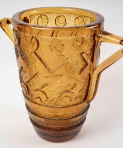 1930 Daum Nancy – Vase Art Déco Géométrique à Anses Verre Orange Ambré Dégagé à l’Acide