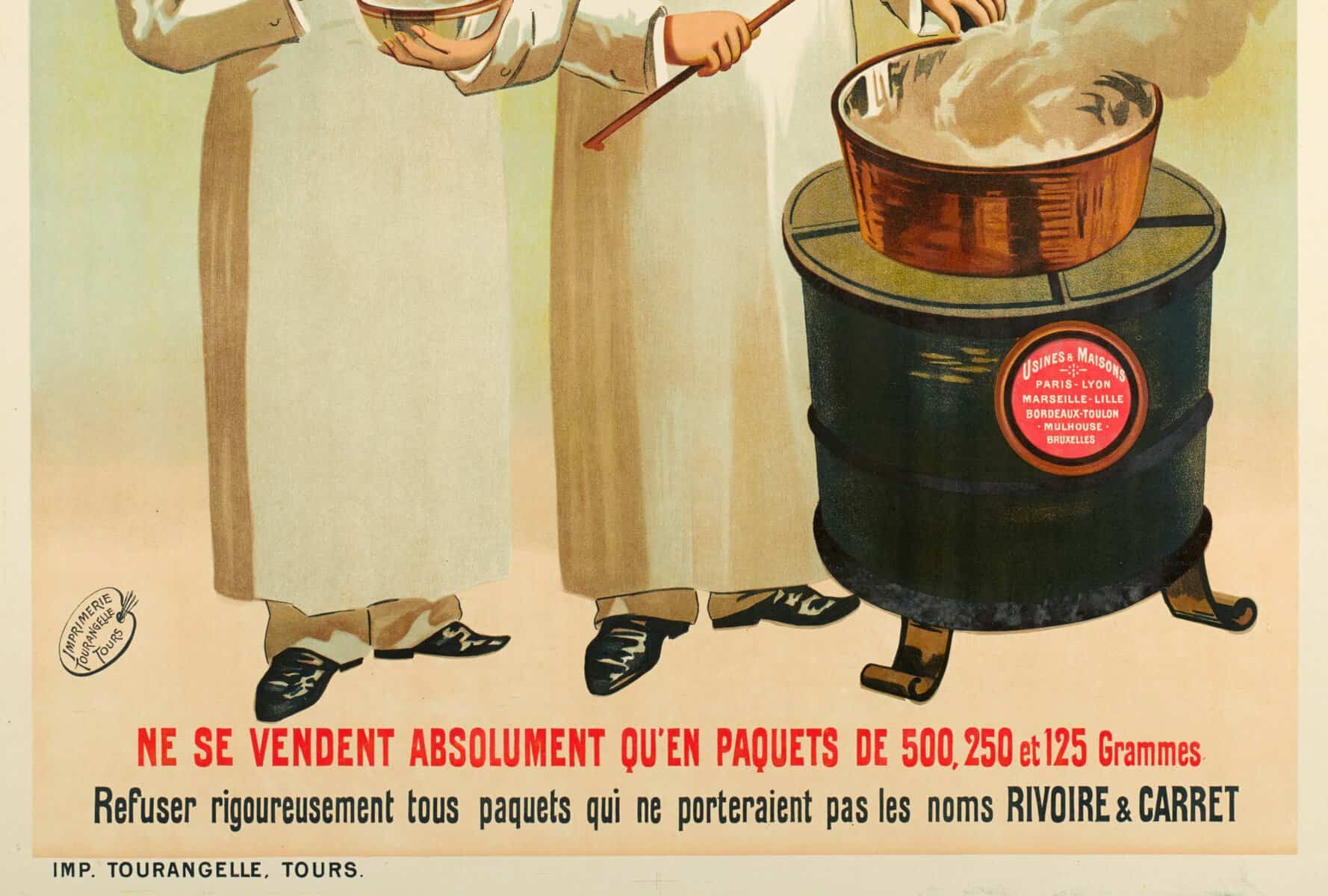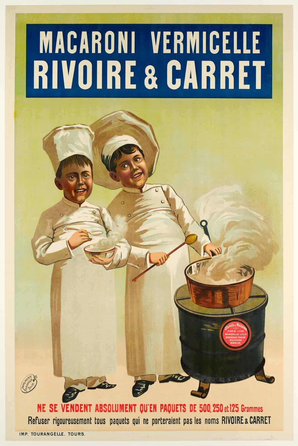 Affiche publicitaire pour les Macaronis et Vermicelles de la marque Rivoire et Carret réalisée vers 1900.