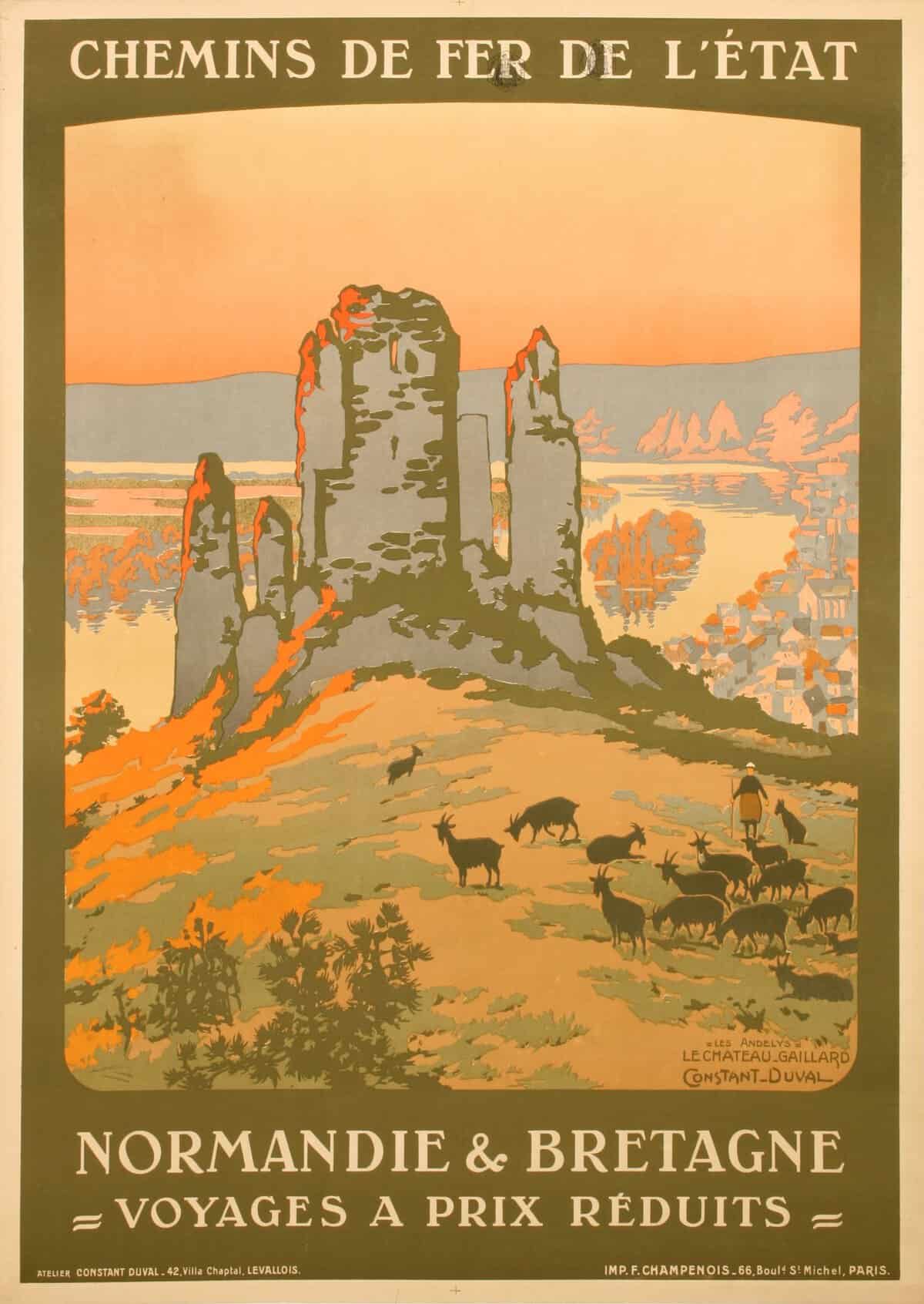 Affiche des Chemins de Fer de l’Etat réalisée par Constant Duval dans les années 20 pour promouvoir le tourisme en Normandie et Bretagne.