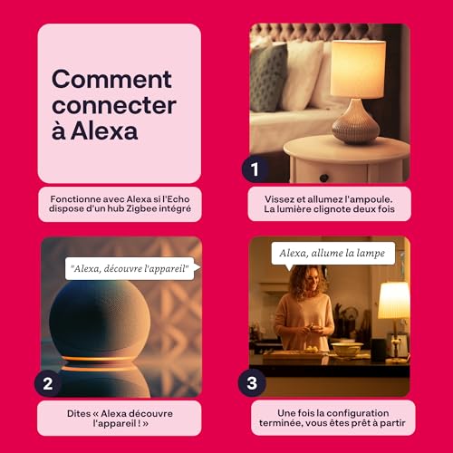 - Fonctionne avec Alexa : Contrôlez vos lumières par commande vocale.