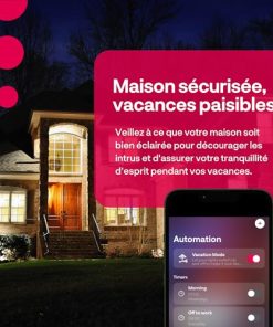 - Programmation : Planifiez l’allumage et l’extinction de vos lumières pour optimiser votre consommation d’énergie et sécuriser votre domicile.