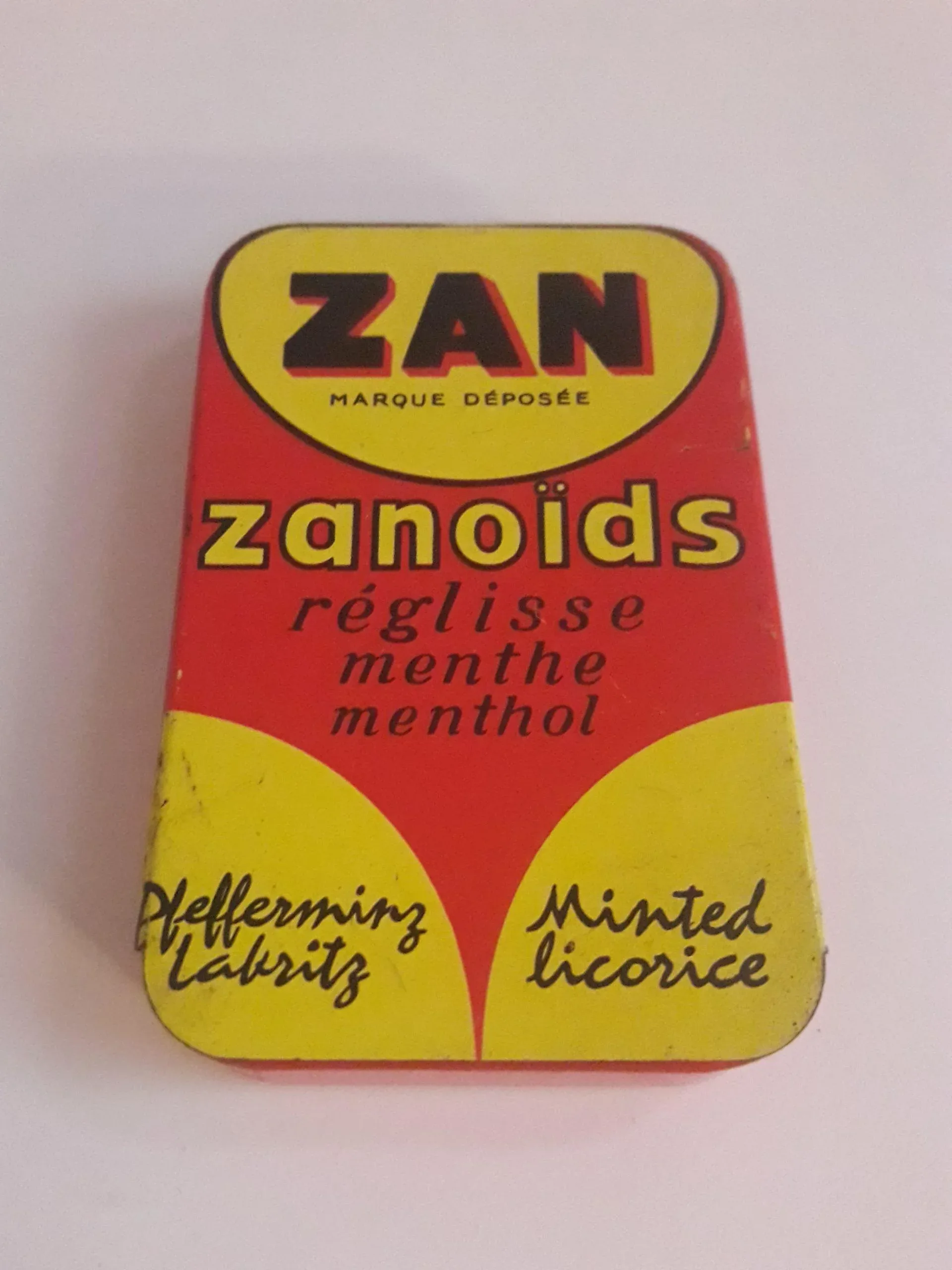 Ancienne boîte publicitaire ZAN réglise – menthe – menthol.