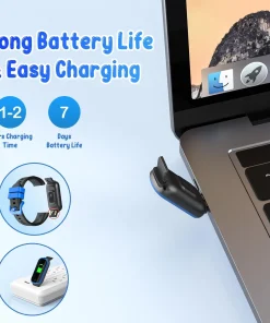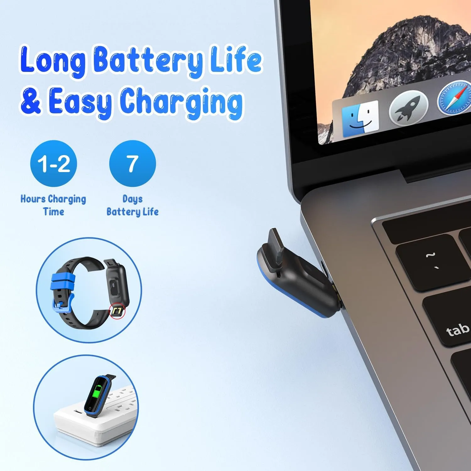 Notre bracelet est fabriqué avec un silicone liquide amélioré, offrant une douceur et un confort inégalés pour la peau des enfants. Conçu pour être porté toute la journée, il est agréable à utiliser et ne cause aucune gêne. Doté d’une batterie intégrée de 90 mAh, le bracelet peut fonctionner pendant 7 jours sans rechargement. Son écran carré HD de 0,96 pouce avec une résolution de 160*80 assure une interface claire et facile à utiliser.