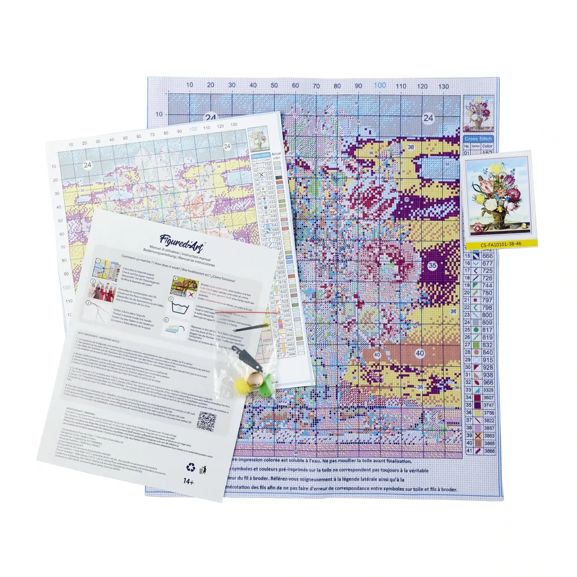 Ce kit de Broderie Point de Croix est prêt à broder et contient tout le nécessaire pour réaliser votre œuvre :