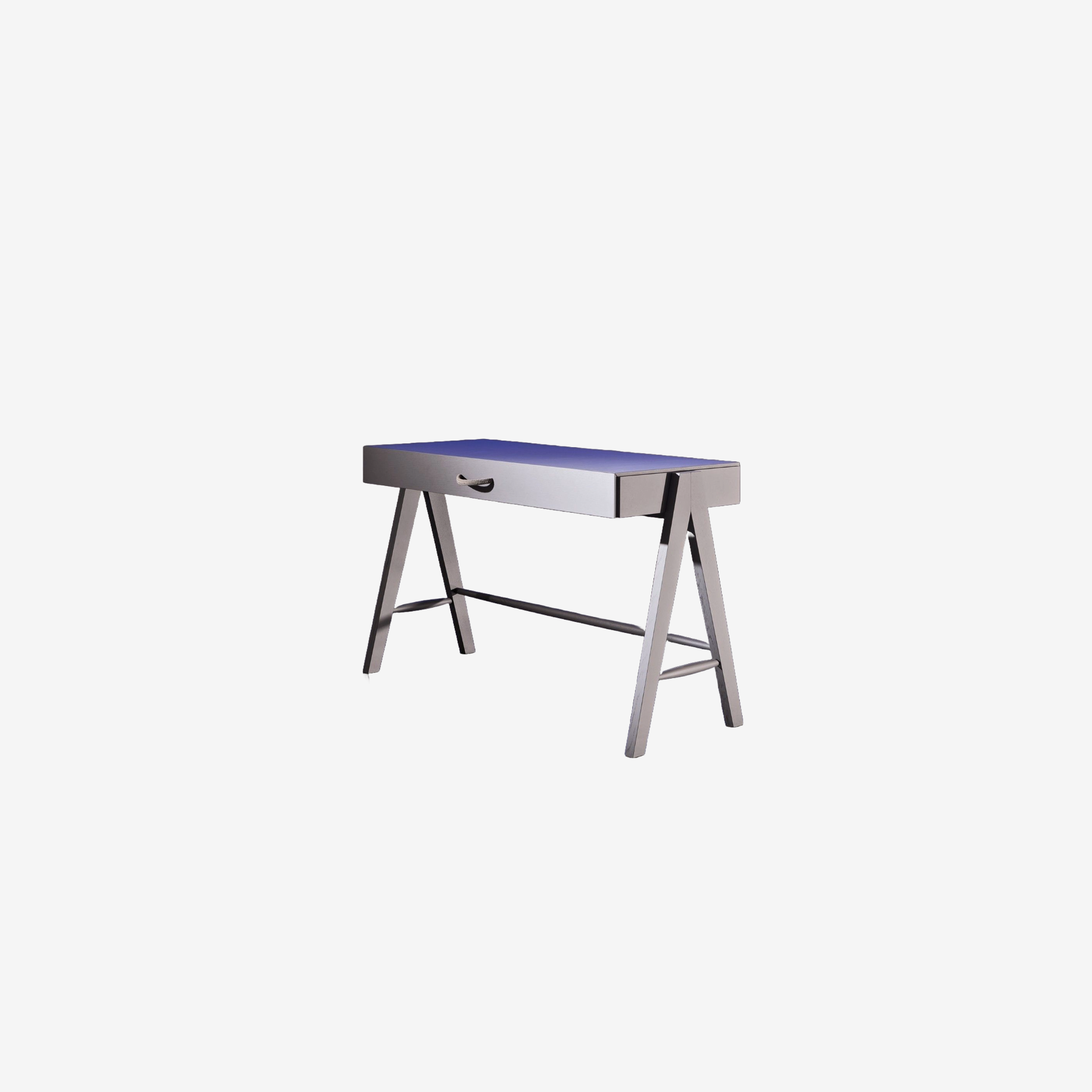 Chaque élément repose sur une structure graphique en “V” inversé, conférant à l’ensemble une impression de légèreté maîtrisée. La pureté formelle est enrichie par des détails subtils : de délicates poignées en corde textile tressée, qui ajoutent une texture douce et artisanale à ces volumes épurés.