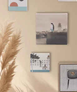Le carreau céramique « SUR LE PORT » est une création charmante et pleine d’esprit d’une artiste française, qui capture l’essence poétique et parfois humoristique de la vie portuaire sur l’île d’Yeu. Au cœur de cette œuvre, un pingouin curieux observe les allées et venues des marées, offrant une représentation inattendue et amusante de la contemplation et de la patience face à l’immensité de l’océan.