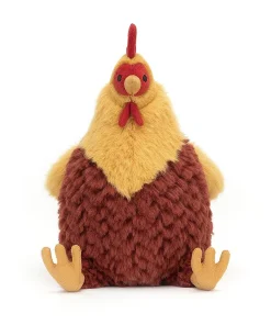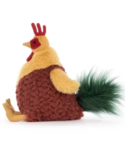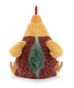 Fier et robuste, le Coq Cluny ressemble à un gros ananas tout doux ! Ce dandy espiègle arbore un ventre touffu couleur cacao, un jabot et des ailes crème, ainsi que des griffes suédées ensoleillées. Ne manquant pas de détails, il est paré de fines plumes et d’une crête écarlate, d’un masque rouge vif et d’une queue verte! Un véritable héros du câlinage !