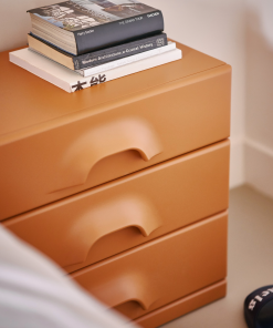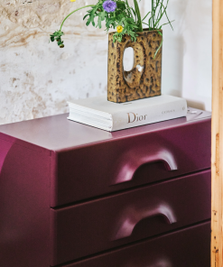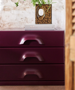 Le design de cette commode repose sur un équilibre parfait entre simplicité et sophistication. Sa silhouette géométrique aux lignes nettes et douces crée une esthétique contemporaine qui évoque le confort et la modernité. Les coloris mûre et orange confèrent au meuble une aura de luxe discret, idéale pour apporter une note vibrante sans être trop imposante. Ce choix de teinte s’harmonise à la perfection avec des styles variés, qu’ils soient modernes, industriels, scandinaves ou encore bohèmes.