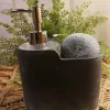 Doseur résine cuisine imitation marbre gris fonçé avec brosse et éponge dimensions 21 x 6.1 x 19 cm