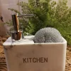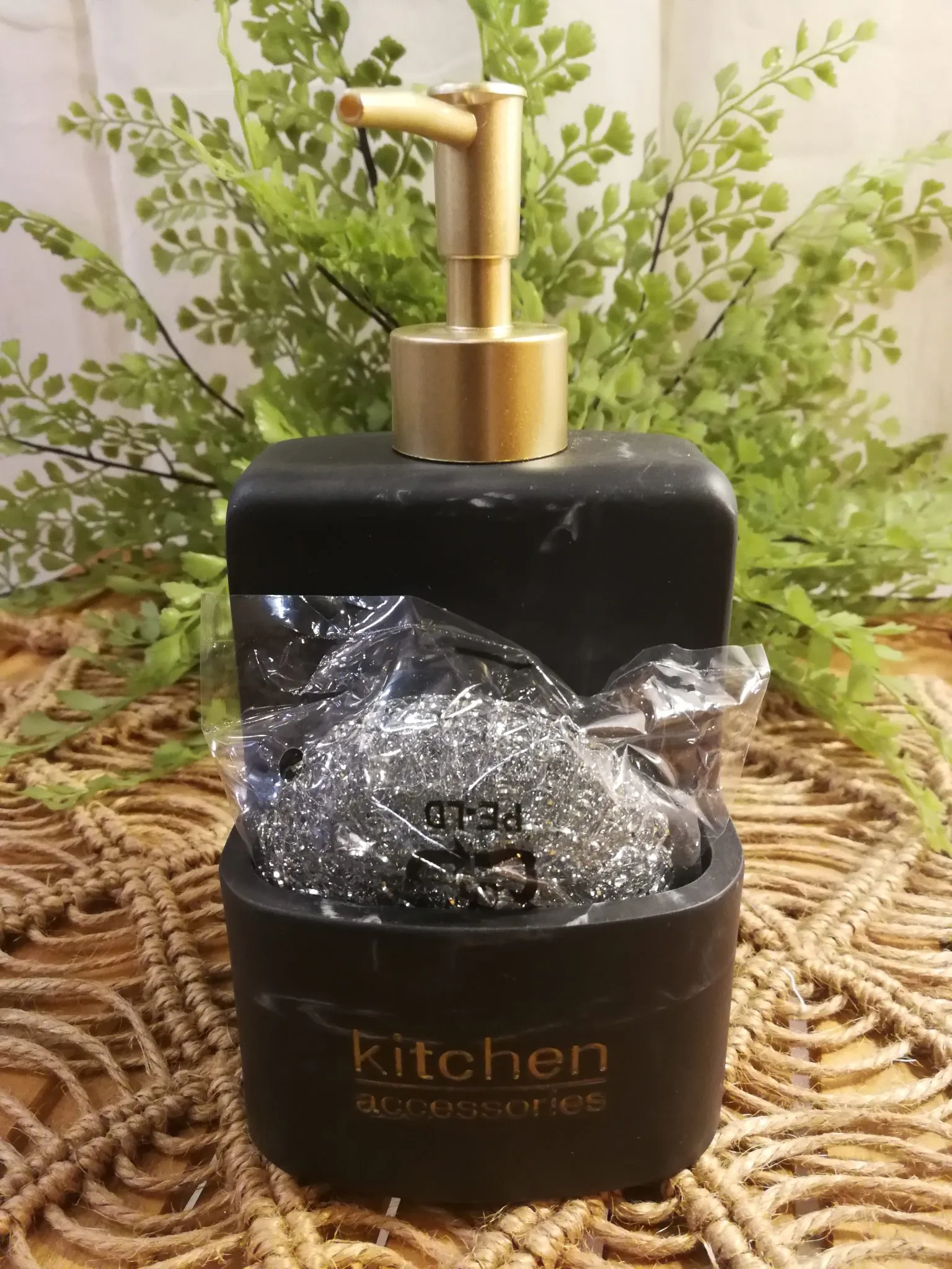 Doseur résine cuisine imitation marbre gris fonçé avec brosse et éponge dimensions 21 x 6.1 x 19 cm