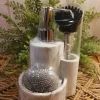 Doseur résine cuisine imitation marbre blanc avec éponge dimensions 9 x 8 x 18 cm