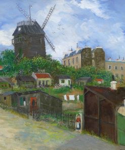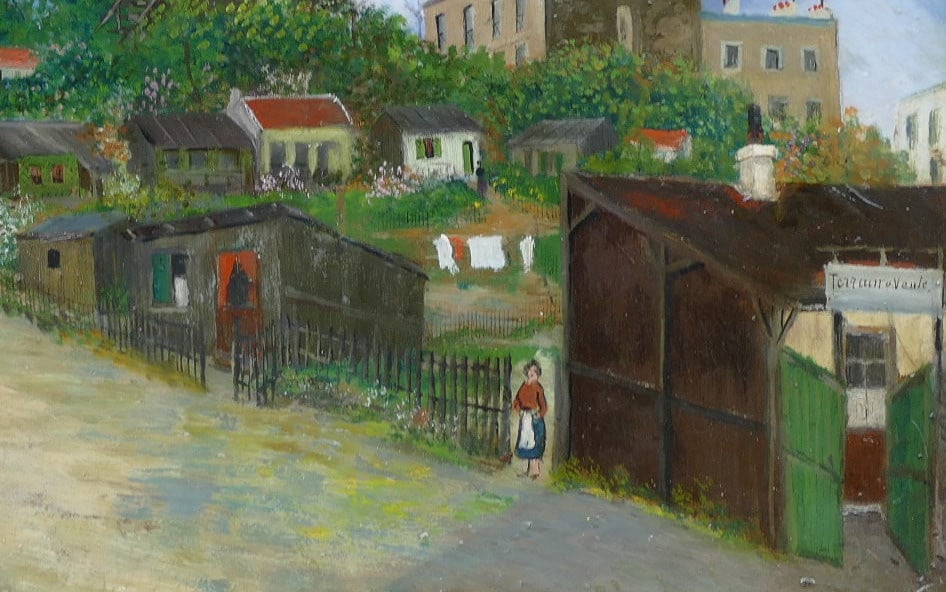 Paris, vue de Montmartre, le Moulin de la Galette, le maquis et l’avenue Junot.