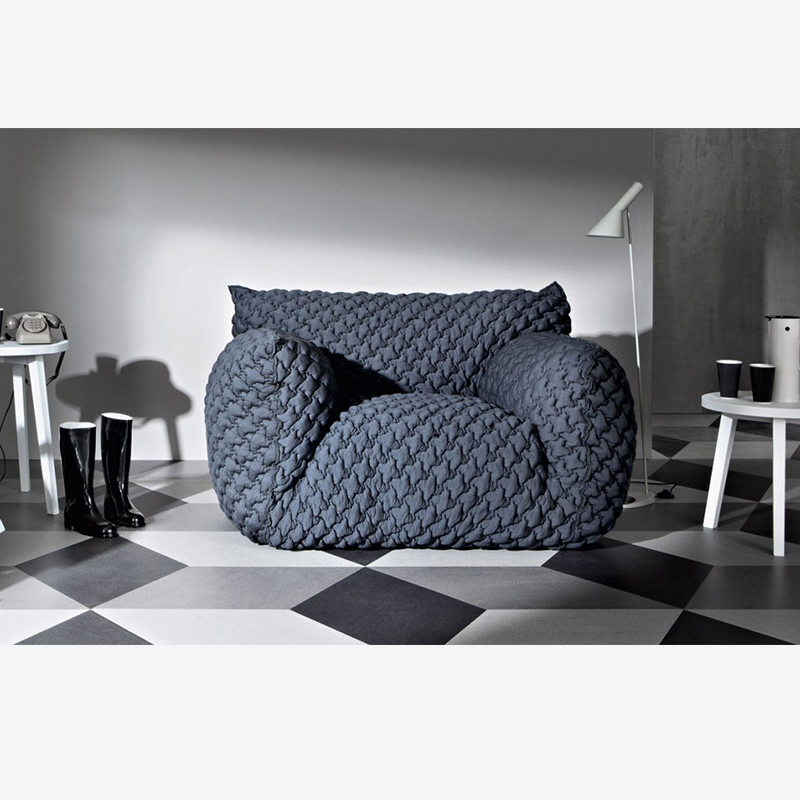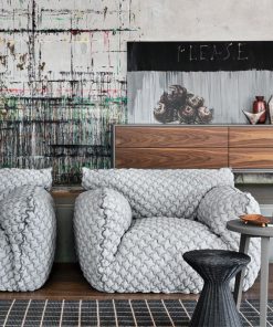 Chaque fauteuil ou canapé se distingue par ses volumes amples et ses accoudoirs hauts. De plus, l’assise profonde enveloppe le corps et crée une atmosphère de cocon. Le design devient alors un élément central de l’espace, à la fois graphique et chaleureux. Sous cette apparente simplicité, la construction révèle un grand savoir-faire. En effet, le rembourrage associe plusieurs densités de mousse de polyuréthane. Une couette matelassée, garnie de duvet d’oie et de fibres polyester, complète l’ensemble. Ce choix technique assure un équilibre subtil entre moelleux et soutien.