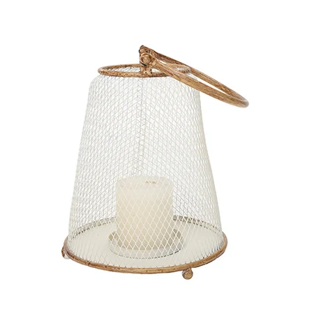 Lanterne en grillage beige de 24cm de haut hors anse.