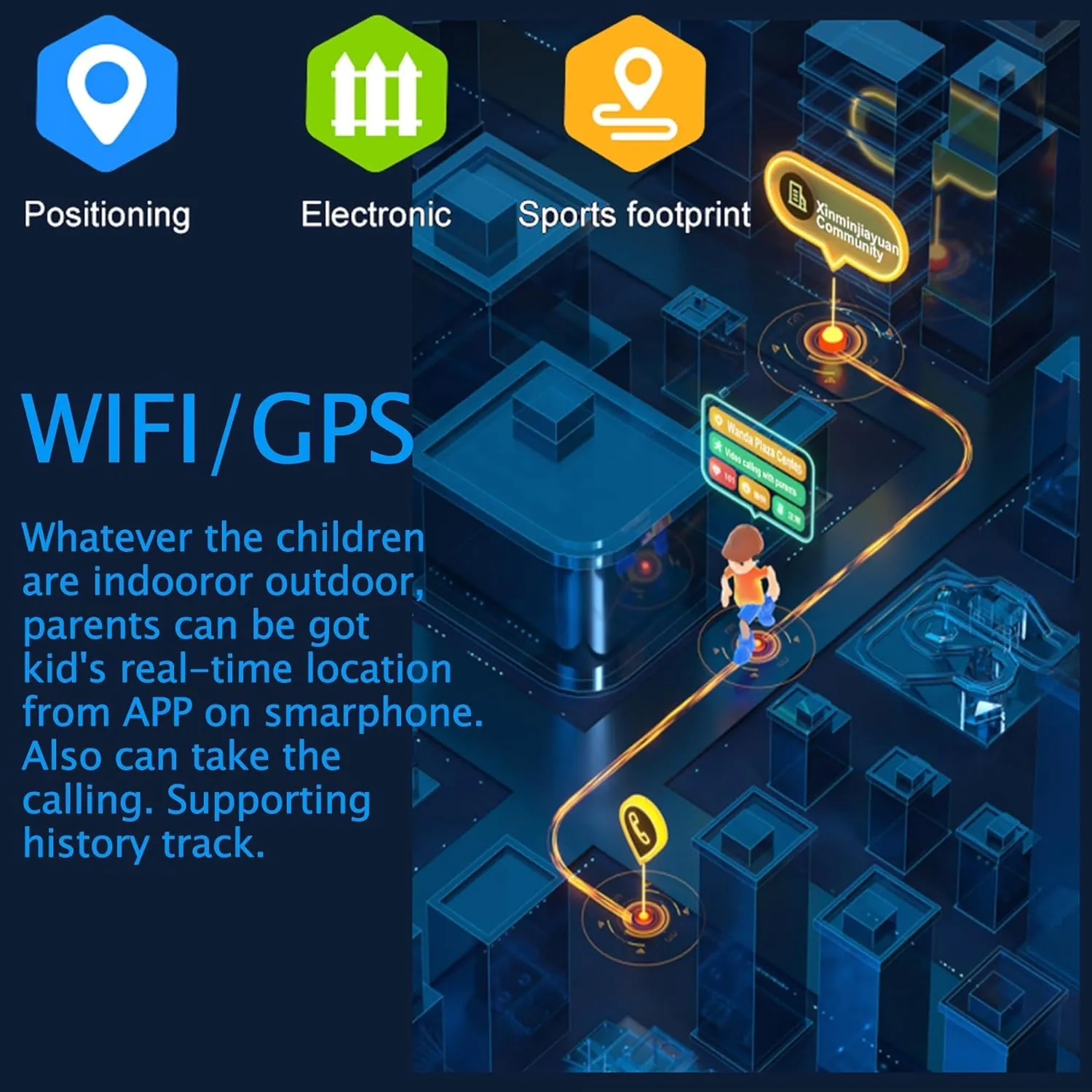 La montre utilise un système de localisation GPS+WIFI+LBS+AGPS précis, permettant aux parents de suivre en temps réel la position de leurs enfants via une application dédiée. Les alertes sont envoyées lorsque l’enfant sort de la zone de sécurité définie, assurant ainsi une protection constante.