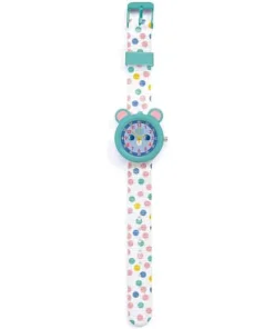 Douce et espiègle, la montre Souris de Djeco est parfaite pour accompagner les enfants dans l’apprentissage de l’heure. Son bracelet blanc à petits pois lui donne un air joyeux et élégant, tandis que le petit visage de souris sur le cadran apporte une touche de tendresse qui plaira à coup sûr.