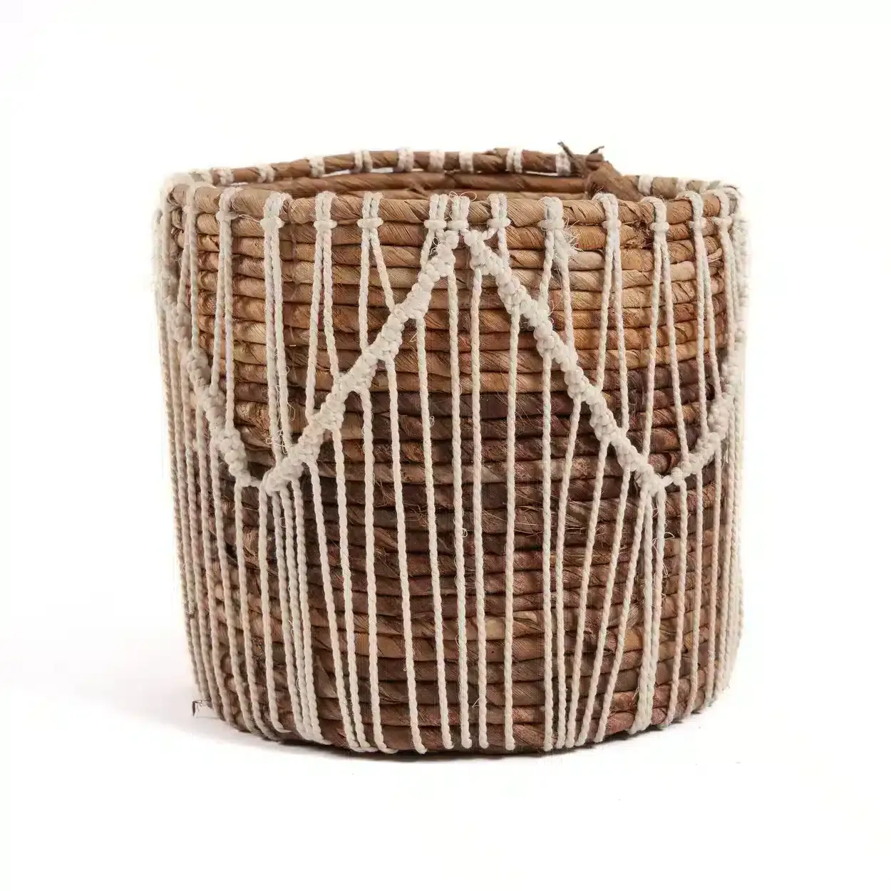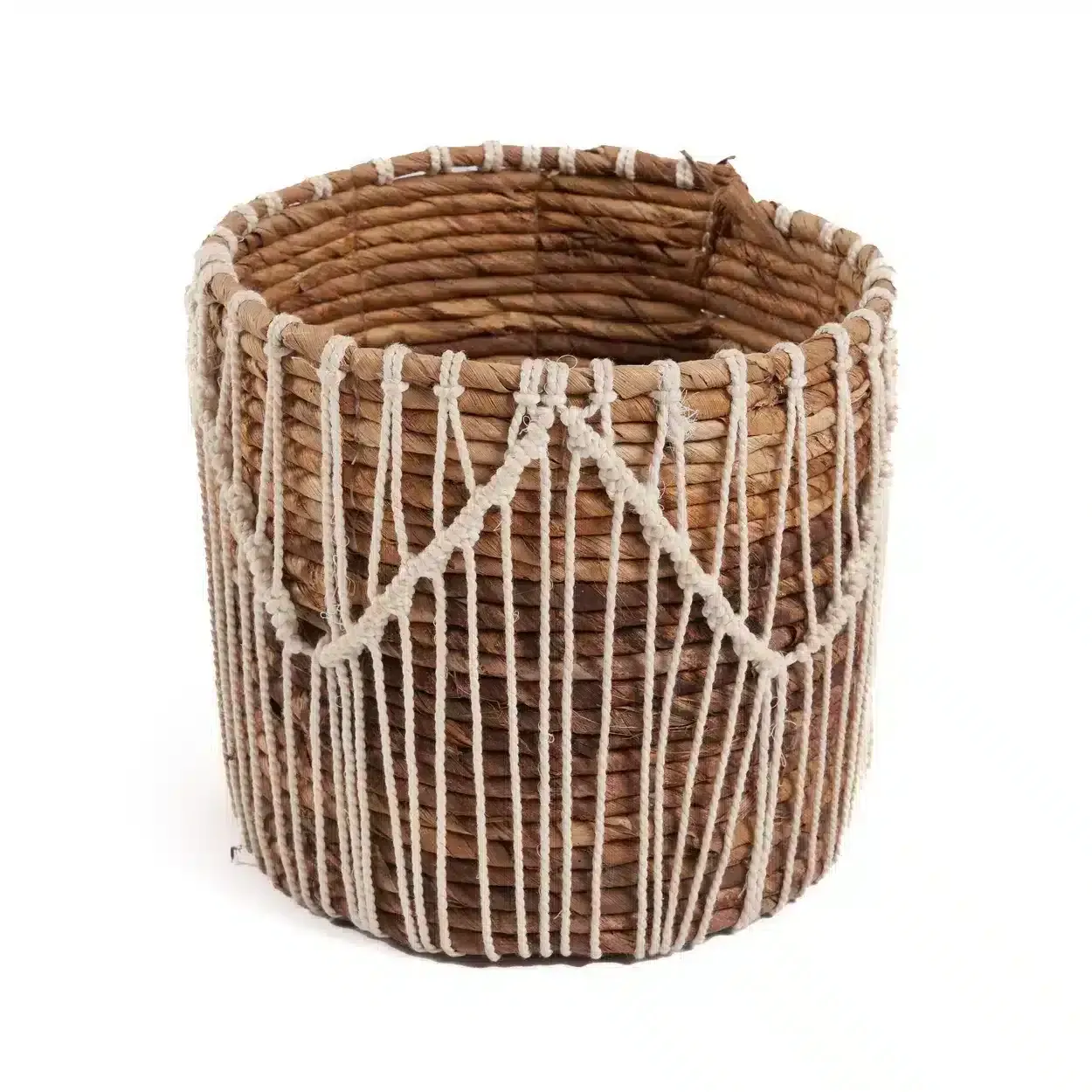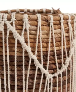 - Macramé Complex : Le macramé complexe ajoute une dimension artistique à ce panier, le transformant en une pièce maîtresse décorative.