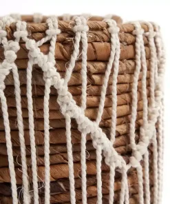 - Macramé Complex : Le macramé complexe ajoute une dimension artistique à ce panier, le transformant en une pièce maîtresse décorative.