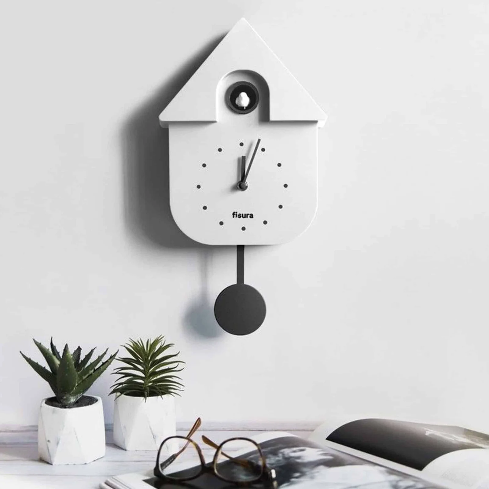 Pendule Murale Coucou Maison Noir/ Blanc, Fisura.