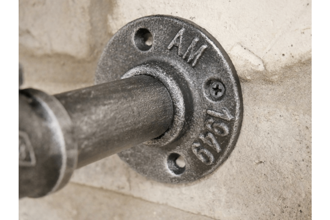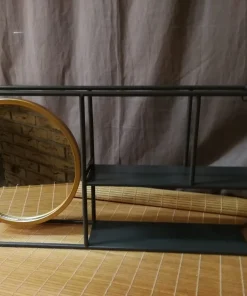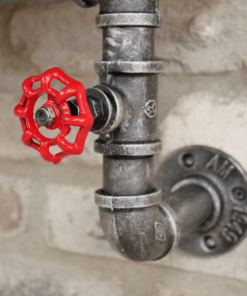 Petite étagère murale style industriel. Le montage de ce meuble en bois et métal, avec tuyaux, coudes et écrous, finition vieillie, donnent un aspect industriel très réussi.