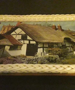 Plateau de service kitsch, décor maison Normande en toit de chaume.