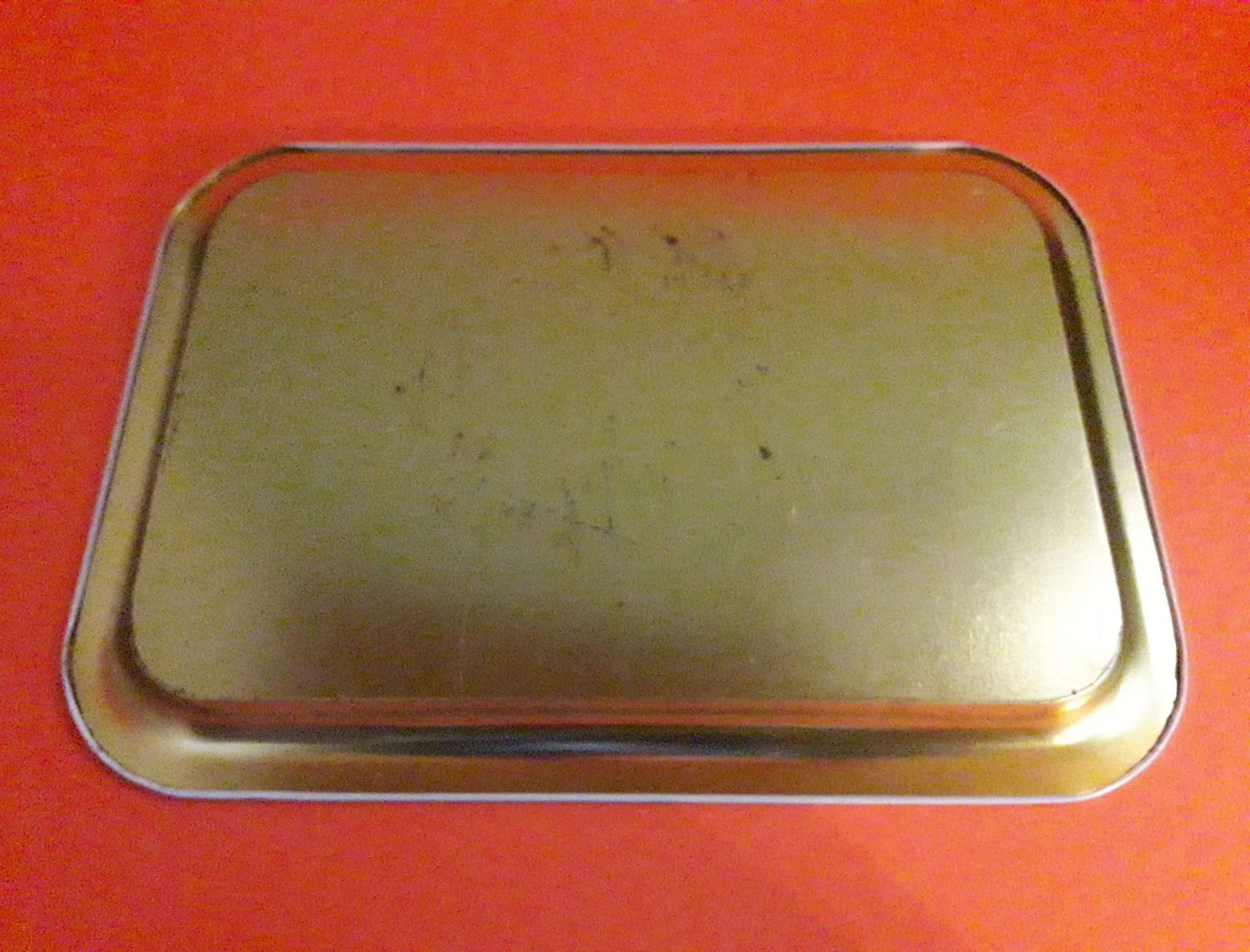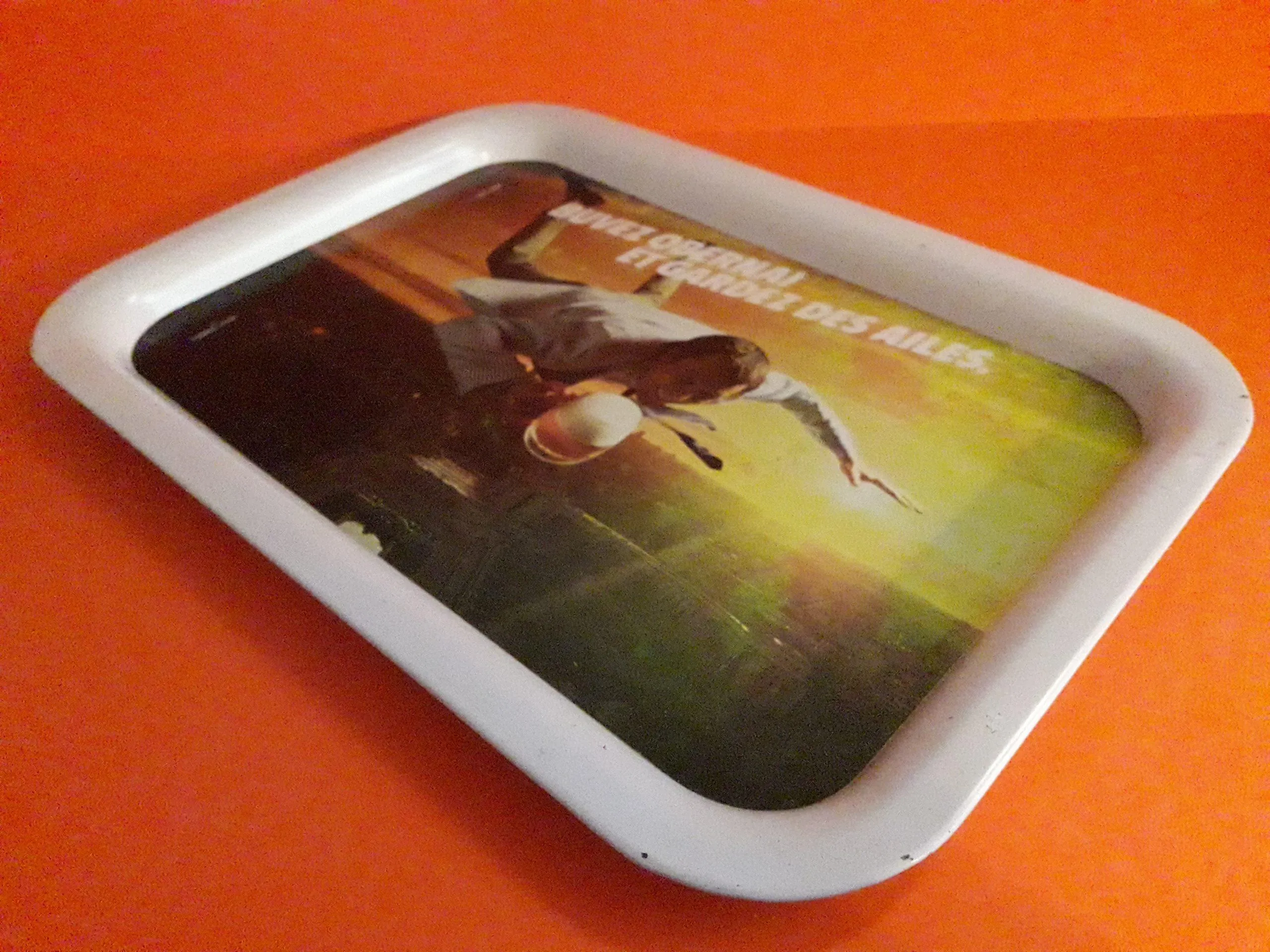 Plateau en métal. Dimensions : 37 x 26,5 cm. Quelques rayures d’usage, sinon bon état. (52)