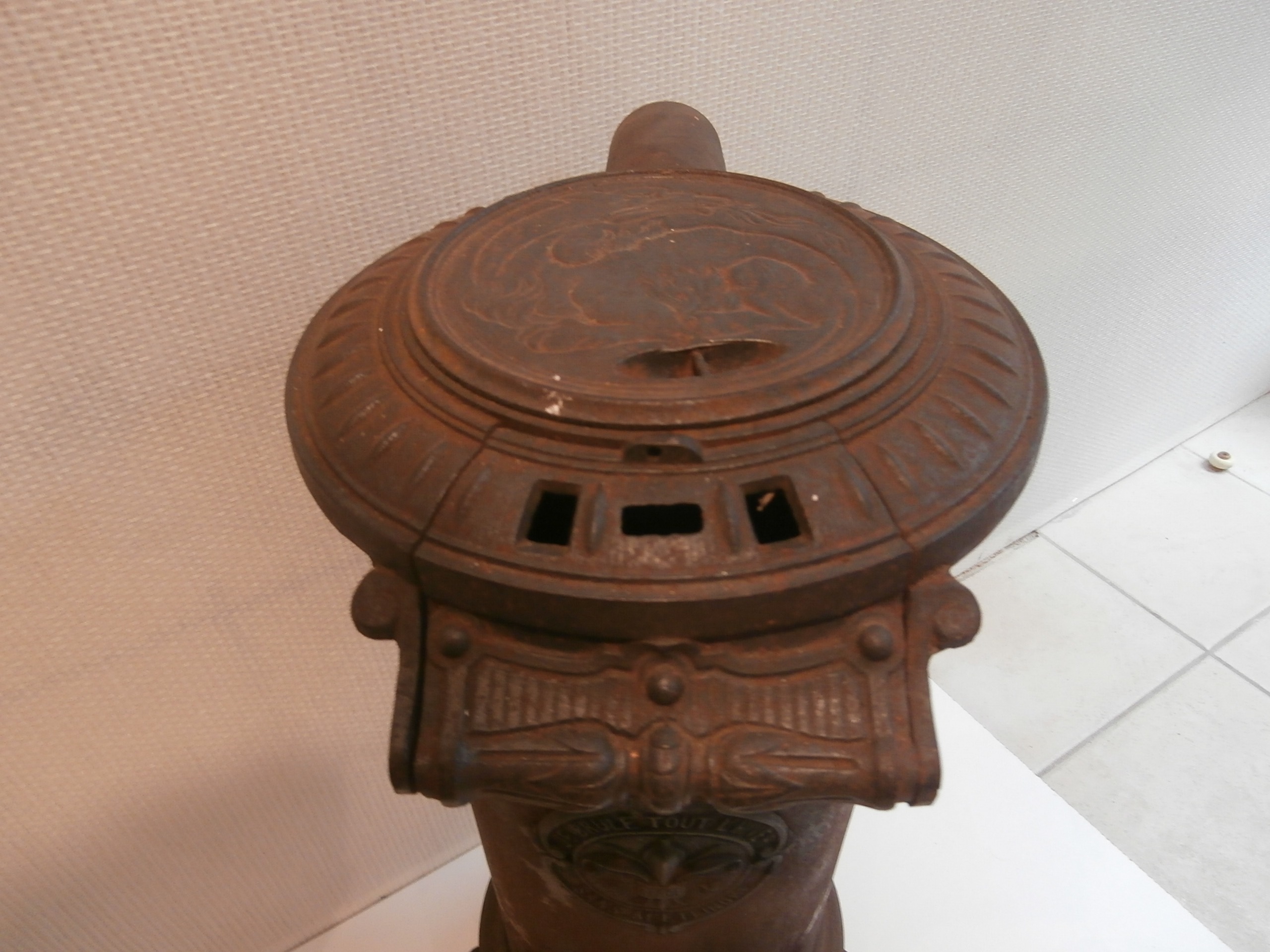 Poêle Ancien Rond Avec Décor Fleur De Lys