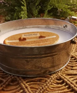 Bougie cire seau métal galvanisé méches bois dimensions 17 x 10 x 8 cm