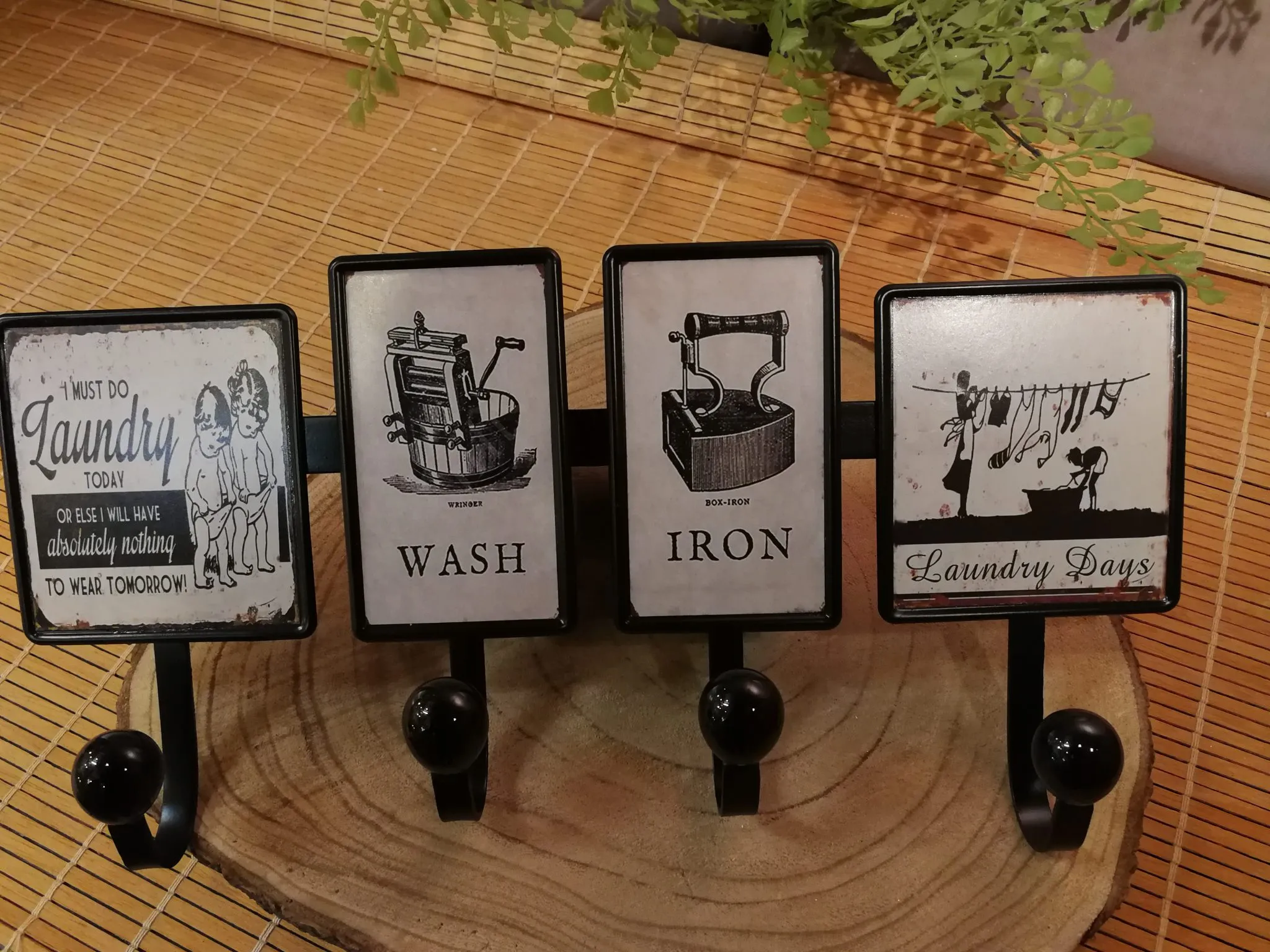 Portemanteau mural métal avec photos anciennes noir dimensions 38 x 6 x 19 cm