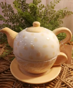 Théiére dolomite jaune pâle avec joli motif dans la tasse dimensions 18 x 13 x 15 cm 750 ml
