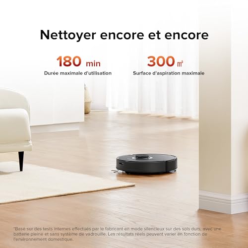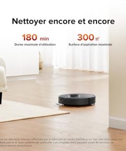 Grâce à sa batterie lithium-ion de 5200 mAh, le Roborock Q7 Max peut nettoyer sans interruption pendant jusqu’à 3 heures avec une seule charge. Il est capable de couvrir une superficie d’aspiration maximale de 300 m², soit une surface suffisante pour la plupart des foyers. De plus, son système de navigation LiDAR PreciSense® lui permet de trouver le chemin le plus efficace pour nettoyer l’ensemble de votre domicile.