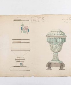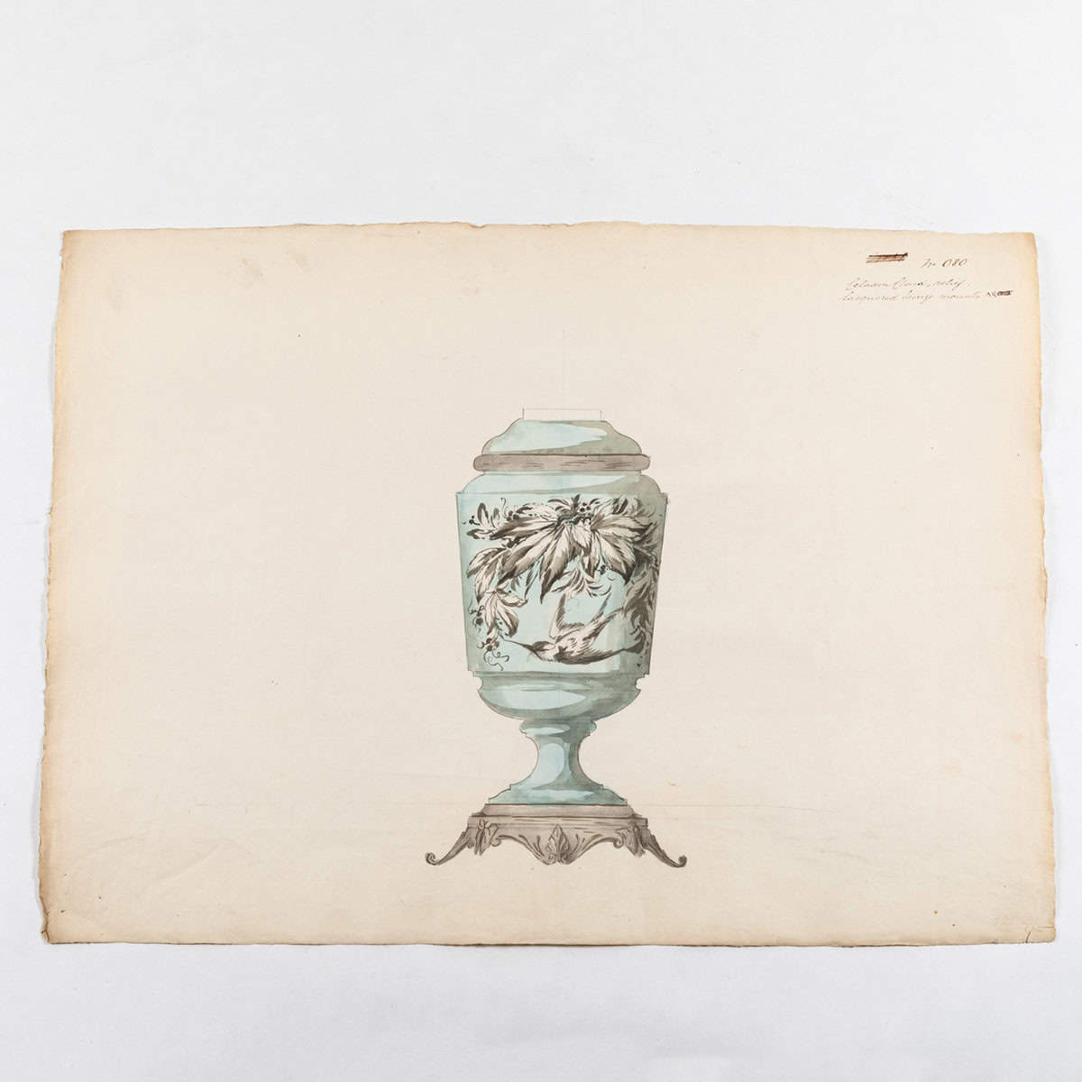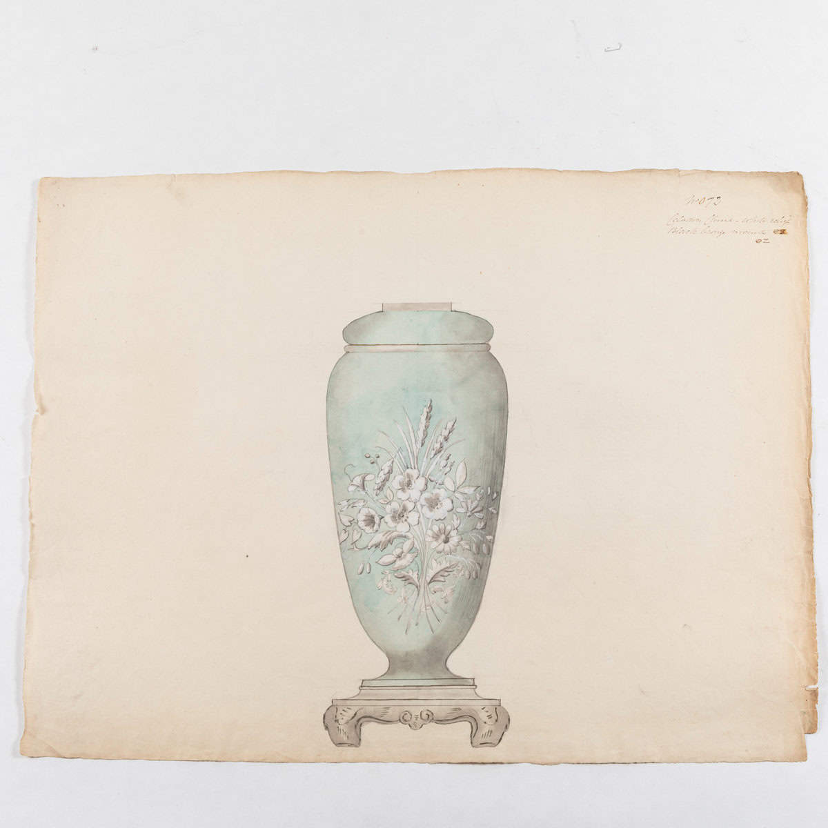 Série d’aquarelles et dessins de vases d’une manufacture, XIXe
