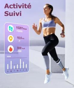 Notre montre surveille votre santé en temps réel, incluant la fréquence cardiaque sur 24 heures, le taux d’oxygène dans le sang (SpO2), et analyse la qualité de votre sommeil. Elle suit également vos pas, la distance parcourue et les calories brûlées. Toutes ces données sont synchronisées avec votre téléphone pour une analyse approfondie de votre état de santé.