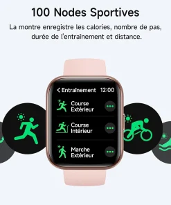 Avec 100 modes sportifs intégrés, notre montre répond à tous vos besoins d’exercice. Elle offre un suivi précis du podomètre et de la distance et son étanchéité IP68 vous permet de l’utiliser sans souci lors de vos activités quotidiennes, même sous l’eau.