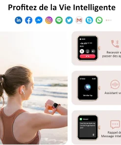 Découvrez notre montre connectée IP68 pour femmes, un bijou technologique qui allie élégance et fonctionnalité. Conçue pour simplifier votre quotidien, elle offre une multitude de fonctionnalités allant de la gestion des appels à la surveillance de la santé. Explorez ci-dessous ses caractéristiques détaillées qui en font un compagnon indispensable.