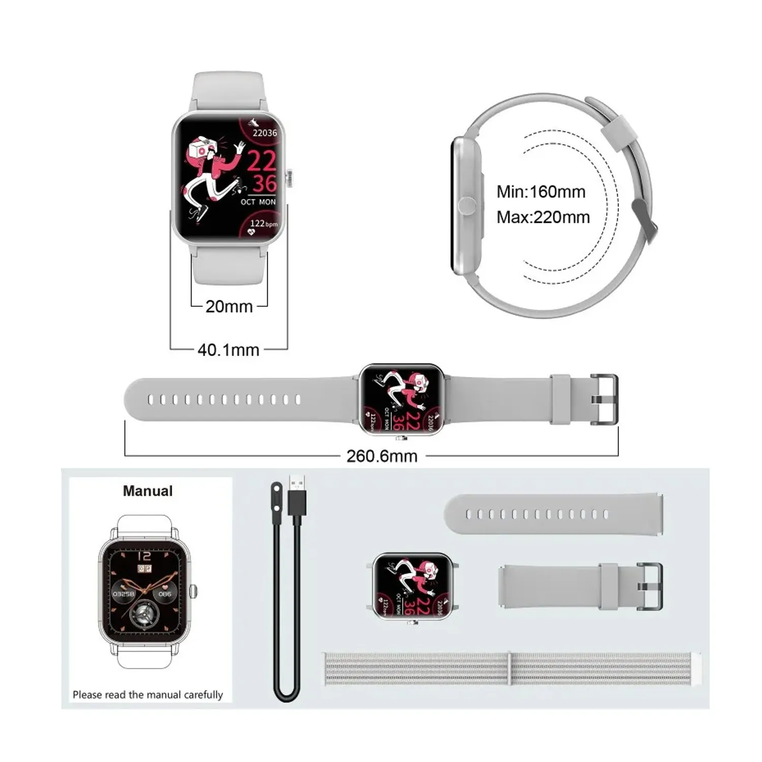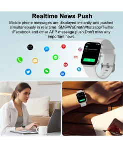 Notre montre connectée est bien plus qu’un simple accessoire. Dotée d’un écran de 1,69 pouce, elle offre une multitude de fonctionnalités pour un suivi complet de votre santé et une connectivité sans faille avec vos appareils Android. Laissez-vous guider par cette technologie moderne et élégante, conçue pour répondre à vos besoins quotidiens.