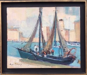 Tableau Marine, bateaux au port, Marseille