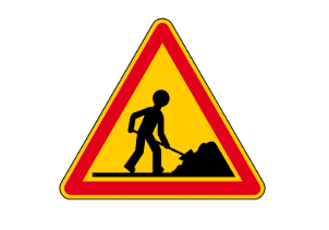Le pictogramme universel « travailleur » noir sur fond jaune avec bordure rouge respecte la norme AK5, offrant une alerte rapide et claire aux usagers.